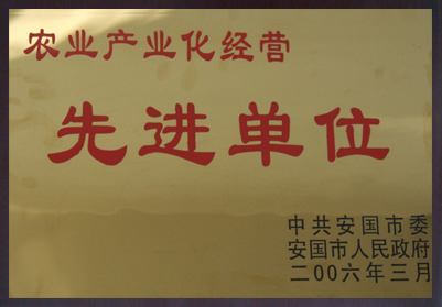2006年3月,我公司被評為農(nóng)業(yè)產(chǎn)業(yè)化先進(jìn)單位。